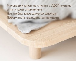 Хотели минималистичную и при этом эффектную с красивой фактурой поверхности кровать. Менеджер Екатерина посоветовала нам массив ясеня, так как он твердый. На ощупь это что-то невероятное! Эффект парения нам очень нравится и вообще кровать выглядит дорого, в реальности ни за что не спутаешь с ЛДСП. Мы довольны.